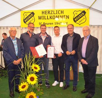 Für den Sportbund Rheinland war deren Ehrenvorsitzender Felix Jäger nach Beuren gekommen. Er wies darauf hin, dass der SC Beuren nicht nur Fußball, sondern auch Breiten- und Freizeitsport anbieten würde. An den Vorsitzenden Torsten Hemmes überreichte er die Ehrenurkunde des Sportbundes Rheinland.