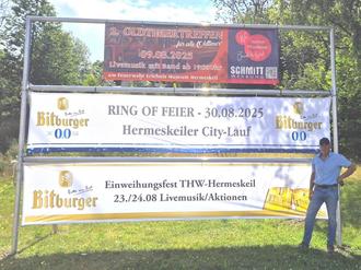 Schluss mit flatternden Veranstaltungsbannern zwischen Bäumen, Laternen und Bauzäunen: Die Stadt Hermeskeil hat jetzt ein professionelles Bannergestell am Bahnhofskreisel aufgestellt! Vereine aus Hermeskeil können dort ab sofort ihre Veranstaltungen prominent und ordentlich bewerben – ganz ohne schiefe Improvisationen.