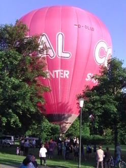 Start eines Heißluftballons 2010 neben der Reinsfelder Pfarrkirche.