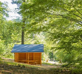 Entlang des Saar-Hunsrück-Steigs: Die neu erbaute Schutzhütte im Steinerwald