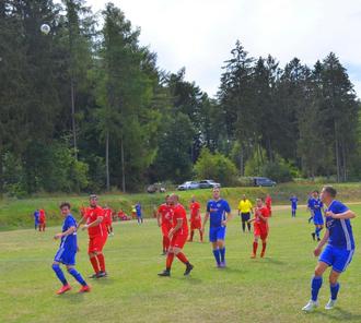 Es begann für das Team von Spielertrainer Jörg Lauer geradezu optimal. Schon in der 4. Minute hatte sich Neuzugang‚ Fabian Cottez auf der linken Seite durchgetankt, dann präzise auf Torjäger Tim Lauer gepasst und dessen Schuss mit seiner linken Klebe landete unhaltbar für den Franzenheimer Torhüter Alexander Schömer im Netz. Danach ließ die junge Mannschaft des Gastgebers Ball und Gegner laufen und das zweite Tor schien nur noch eine Frage der Zeit. In der 27. Minute war es dann soweit. Nach einem erfolgreichen Dribbling vor dem Strafraum brachte Marvin Adams seinen Torjäger Tim Lauer in gute Schussposition, der noch einen Gegenspieler umkurvte und den auf die lange Ecke spekulierenden Torhüter aus Franzenheim mit einem trockenen Schuss in die kurze Ecke überwand. Jetzt schien der Gegner schon zu resignieren und in der 31. Minute wurde der wieselflinke Fabian Cottez von Spielmacher Axel Thomas freigespielt. Im Zweikampf „Eins gegen Eins“ gegen den Torhüter wählte Cottez die falsche Option und versuchte den Torhüter zu überlupfen, der lenkte den Ball reaktionsschnell ans Lattenkreuz. Müßig zu spekulieren, wie der Spielverlauf sich bei einem 3:0-Vorsprung anschließend entwickelt hätte. „Hätte, hätte – Fahrradkette“, jedenfalls erzielten die Gäste im direkten Gegenzug den Anschlusstreffer zum 2:1 durch Thomas Zimmer, einen ihrer auffälligsten Spieler. Dabei wirkte der Abwehrverbund der Gastgeber mehr als schläfrig, Geschenke jedenfalls nahmen die Gäste dankbar an. Aber was soll‘s – man hat ja einen Torjäger namens Tim Lauer – der jedenfalls wird in der 40. Minute durch einen klugen Pass in die Schnittstelle der Franzenheimer Abwehr von Axel Thomas freigespielt und versenkte den Ball flach und humorlos zum 3:1 für sein Team.