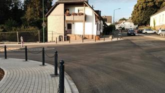 … heißt es seit Kurzem an der Einmündung der Straße „Auf der Scheib“ in die Schulstraße in Hermeskeil. Seit Spätherbst letzten Jahres war die Durchfahrt hier nicht möglich. Grund dafür waren die Arbeiten zur Erneuerung der völlig maroden Labach-Verrohrung, wofür eine außerordentlich tiefe Baugrube ausgehoben werden musste. Die Umgestaltung der Einmündung in die Schulstraße bot sich im Zuge dieser Maßnahme regelrecht an. Die Situation hat sich dadurch insbesondere für die Kinder, die die Grundschule besuchen, deutlich verbessert. Durch eine Überquerungshilfe (links im Bild) sowie die entlang des Gehwegs angelegten Sperrketten, die die Fußgänger dorthin leiten, wurde das Gefahrenpotenzial in der Schulstraße, wo zu den Schulanfangs- und -endzeiten reger Bus- und Elterntaxiverkehr herrscht, erheblich entschärft. Auch der Parkplatz, dessen Oberfläche neu gepflastert wurde, ist jetzt wieder zur Benutzung - z.B. durch Schwimmbadbesucher - freigegeben.
