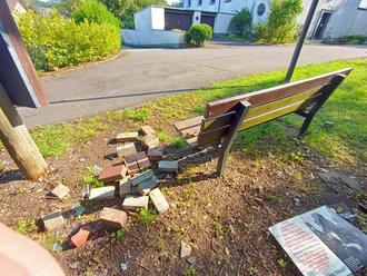… der vor Vandalismus sicher ist. Irgendwann in der vorigen Woche fand an und auf dieser Bank am Rand des Klostergrundstücks wohl ein Saufgelage statt. Davon zeugen Scherben von Bierflaschen, die zumindest bis Montag noch dort lagen. Zu Bruch ging dabei auch die Glasscheibe des Schaukastens, in dem die action 365 regelmäßig Plakate aufhängt. Das aktuelle Plakat landete im Dreck hinter der Bank. Aus welchem Grund man die Steine zusammengetragen hat, bleibt wohl das Geheimnis der Täter, die vermutlich nicht den Mut aufbringen werden, sich zu melden und ihre Hinterlassenschaften zu beseitigen. (WIL-)