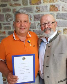 Ehrung von Jörg Malburg (li) durch den Lions-Präsidenten 2021/22 Wolfgang Kaup