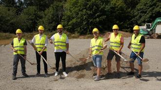 Spatenstich mit Firmeninhaber, Stadtbürgermeister König, Beigeordnetem Treitz und den Chefs der ausführenden Baufirmen