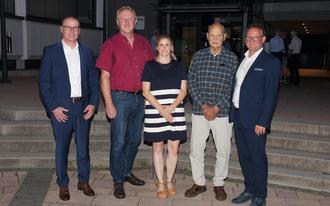 Der Bürgermeister zusammen mit den Beigeordneten und Landrat Metzdorf. vlnr: Stefan Ding, Peter Kretz, Karen Alt, Paul Port, Stefan Metzdorf (Foto: bb)
