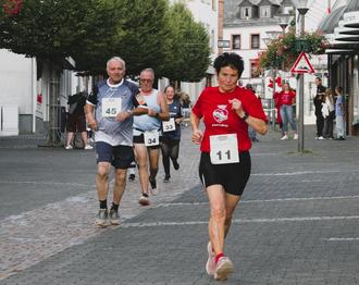 Der „Wettergott“ hatte es mit Planern und Läufern gut gemeint. Die Premiere der Veranstaltung „Ring of Feier“ fand bei bestem Laufwetter – trocken und nicht zu warm – statt. Die stattliche Anzahl von 112 Aktiven zeigte, dass bei den Läuferinnen und Läufern über alle Altersgruppen hinweg (von 3 bis 76 Jahren) das Interesse, sich mit anderen im Wettkampf zu messen, groß ist. Auch wenn der Rathausplatz mit Zuschauern – überwiegend „Fangemeinden“ der Sportler – gut gefüllt war, hätte die Veranstaltung durchaus noch mehr Interesse verdient. Mit Ausnahme des Bambinilaufs (150 m) bildete eine eine „knackige Innenstadtrunde“ von 400 Metern im Stadtkern die Grundlage für die Strecken in den einzelnen Altersgruppen. Sie führte vom Rathausvorplatz durch Rathauspassage und -parkplatz, die alte Poststraße bergan, nach links wieder zum Langen Markt in die Fußgängerzone zum Start/Zielpunkt. Moderne Technik über Kontaktschwelle und Transponder am Läufer stellte sicher, dass Runden- und Endzeiten elektronisch erfasst wurden. Einzig die Anzahl der Runden musste jeder selbst mit zählen. Das führte dazu, dass der spätere Sieger im Hauptlauf gleich noch eine „Ehrenrunde“ lief. Das war aber nicht weiter schlimm, denn disqualifiziert wurde nur, wer nicht die volle Strecke gelaufen war. Ausgezeichnet wurden in den einzelnen Altersklassen (außer Bambini) jeweils die drei schnellsten Läuferinnen und Läufer. Beim Hauptlauf gab es auch einen Sonderpreis für die schnellste Einzelrunde und eine Teamwertung – getrennt nach Frauen und Männern.