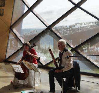 Am 3. September, dem europäischen Tag der jüdischen Kultur waren rund 120 Menschen der Einladung des Fördervereins Gedenkstätte SS-Sonderlager/KZ Hinzert in den Museumsbau auf dem Gelände des ehemaligen SS-Sonderlagers gefolgt, um einer beeindruckenden Konzertmatinee zu lauschen. Rebecca Rust am Violoncello und Friedrich Edelmann am Fagott präsentierten eigens für sie komponierte Stücke jüdischer Komponisten. So schufen sie eine spannungsreiche Verbindung von durch Tod und Verfolgung geprägter jüdischer Vergangenheit zu heutiger Inspiration und Schaffenskraft jüdischen Lebens. Die Stücke von Max Stern (geb. 1947), Ernest Bloch und Laurence Sherr (geb. 1953) spiegeln eben jenes Spannungsfeld von fast unerträglichem Leid und ewigem Schmerz über den Verlust von Familie und Unversehrtheit sowie dem dringenden Wunsch nach Leben, Freude und dem Im jetzt sein. Gleichzeitig ist die Musik als Mahnung an uns heute zu verstehen, die Erinnerungen an das Verbrechen der Shoa lebendig zu halten und gerade in Zeiten ansteigenden Antisemitismus ein klares „Nie wieder!“ zu betonen. Friedrich Edelmann erläuterte jedes Stück und ermöglichte so einen einfachen Zugang zu den Neukompositionen. Beide Instrumente sind im Zusammenspiel wenig bekannt. Es gibt kaum Duette für Fagott und Cello. Es ist das Verdienst des musizierenden Paares Rust und Edelmann, dass nun das Repertoire um Songs of Ascents (2007) von Max Stern, Elegy and Vision (2017), Khayele’s Waltz (2019) oder der Ziegentanz (2021) von Laurence Sherr erweitert wurde. Denn das Duo hatte speziell um diese Kompositionen gebeten. Kennengelernt hatten sich die Amerikanerin Rebecca Rust und der Deutsche Friedrich Edelmann in Belgien zu Proben in einem Welt-Orchester vor mehr als 50 Jahren. Seitdem leben und musizieren sie zusammen. Fagott und Cello bedienen die tiefen Lagen, deren warme Töne eine besondere Herzlichkeit ausstrahlen, erläutern die beiden den Reiz ihres Zusammenspiels. Die traditionellen Melodien und Rhythmen, die häufig abwechselnd in Form eines Dialogs präsentiert wurden, verbreiten einerseits Düsternis und Hoffnungslosigkeit, die aber immer wieder durch das Aufblitzen von tänzerischen Melodien, Anklänge an Walzer, also durch Licht und Lebensfreude unterbrochen wurden. Einen versöhnlichen Abschluss bildete der humorvolle Ziegentanz, der das Publikum zum Mitschwingen brachte. Der langanhaltende Applaus konnte durchaus doppeldeutig verstanden werden: als Lob für die wunderbare Darbietung des ungewöhnlichen Cello-Fagott-Duos und als Unterstützung gegen jede Art von Menschenfeindlichkeit und Antisemitismus. (TB)