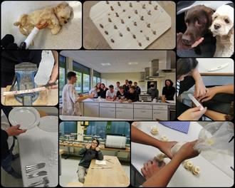 Das Digitale Berufsinformationszentrum (Digi BIZ) wurde den Schülerinnen und Schülern am Freitag von zwei Vertretern der Agentur für Arbeit nähergebracht. Anschließend konnten die Jugendlichen aus fünf verschiedenen Workshops auswählen: Die Firma KOMAGE aus Kell bot einen Metallworkshop an, in dessen Verlauf die Jugendlichen Armbänder herstellten und Ringe personalisierten. Bei Ausbildungscoach Gerd Kiefer von der Handwerkskammer Trier produzierte jeder Teilnehmer ein eigenes Solitär-Spiel aus Holz. Die Seezeitlodge aus Gonnesweiler stellte die Berufe Koch/Köchin, Bäcker/in, Hotelfach und Kosmetiker/in vor und die Schülerinnen und Schüler konnten Cupcakes verzieren, lernten die Herstellung von Sorbet, wie man einen Tisch fachmännisch eindeckt und hatten die Möglichkeit, sich gegenseitig die Hände zu peelen und die Fingernägel zu verschönern. Die KiTa Adolf-Kolping stellte ihre Arbeit und die tiergestützte Therapie vor, indem die Jugendlichen mit den beiden Therapiehunden Frieda und Lanee arbeiteten.