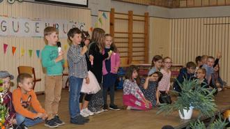 Die Mädchen und Jungen der 2. Klasse tragen Gedichte vor.