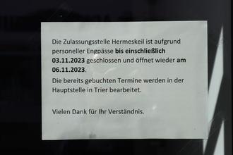 Unser Bild zeigt den aktuellen Aushang an der Zulassungsstelle der Kreisverwaltung Trier- Saarburg, Außenstelle Hermeskeil. Eine weitere Außenstelle befindet sich in Saarburg, die scheinbar durchgehend geöffnet ist, da auf der Homepage der Zulassungsstellen nur die Außenstelle in Hermeskeil als geschlossen veröffentlicht wird. Viele HochwälderInnen empfinden den Verweis auf die Hauptstelle in Trier als Zumutung, besonders, wenn bereits Termine in Hermeskeil vergeben wurden. Bedenkt man, dass wir HochwälderInnen einen doppelt so weiten Weg nach Trier zurücklegen müssen als die Saarburger, dürfte das Empfinden einer Zumutung, zumindest für den Verfasser dieses Kommentars, stark untertrieben sein.