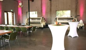 Der große Veranstaltungssaal mit den Obstpressen als "Deko" im Hintergrund