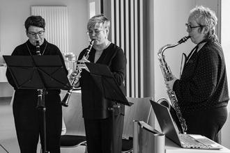 Nach der Eröffnung durch Annette Dixius Klassen wurde der offizielle Teil durch Musikstücke von Ulrike Klar am Tenorsaxophon sowie Simone Spohn und Manuela Nellinger, beide Klarinette, musikalisch begleitet.