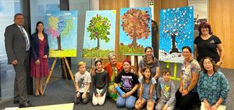 In den 14tägigen Leseclub-Treffen vermitteln die Betreuerinnen durch spielerische Aktionen den Spaß am Lesen, Basteln, Forschen und Experimentieren. Im Lauf des vergangenen Jahres wurden so im Frühling, Sommer, Herbst und Winter die jeweilige Jahreszeit kreativ im Lesekontext aufgearbeitet und auf eine Leinwand gebracht. Dargestellt wurden vier wunderschöne Bäume mit verschiedenen Gestaltungstechniken im Zustand der jeweiligen Jahreszeit.