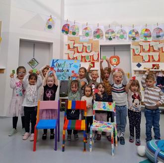 Im Rahmen der Woche der Kinderrechte 2025 im Landkreis Trier- Saarburg, haben wir uns mit einem Projekt zu dem Thema „Platz für Kinderrechte“ beteiligt. Die Kinder bemalten Stühle, die symbolisch für die Kinderrechte und deren Platz in unserer Gesellschaft stehen. Diese Stühle werden in den kommenden Wochen in verschiedenen Institutionen in Hermeskeil ausgestellt und sollen zur Reflexion und Diskussion anregen. Die Kinder haben mit viel Freude und Fantasie die Stühle gestaltet.