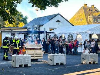 Die Jugendfeuerwehren aus Geisfeld und Rascheid hielten auf dem Vorplatz des Bürgerhauses noch eine kleine Löschübung ab.