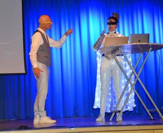 In einer 60 minütigen Bühnenshow hat Frank Astor, der gebürtige Hermeskeiler, am vergangenen Samstag das Publikum in der Hochwaldhalle humorvoll, mitunter philosophisch aber auch mit sehr viel Fachwissen über das Thema KI unterhalten. Unterstützt wurde er von seiner Ehefrau Christine Astor, die eine Roboterin mit dem Namen „Torbienne“ darstellte.