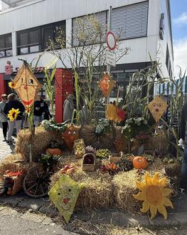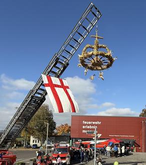 Auch in diesem Jahr ein Hingucker: Der Erntedank-Kranz, der Dank Feuerwehrerlebnismuseum über dem Markttreiben thront. Besonderes Highlight: Die Ausstellung des "Flaggschiffs" Simba vor dem Museun.