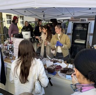 Gute Laune und schmackhafte Kuchen gab´s am Stand der Showtanzgruppe "No Limit" am Rathaus.