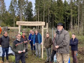 Ausgerüstet mit „Schipp un Hack“ trafen sich augenscheinlich motivierte Lions am Neuen Markt und fuhren im Tross zur eingezäunten Rodungsfläche, auf der an diesem Samstagvormittag bis spät in den Nachmittag in Gruppen 700 Baumpflänzchen gepflanzt wurden. Past Präsident Wolfgang Kaub begrüßte die Anwesenden und führte aus, dass Baumarten zum Zuge kämen, die dem Klimawandel trotzen und somit nachhaltig „Wald sein können“. Nach Theorie und Einweisung folgte die Praxis. Die Lions Mitgliederinnen und Mitglieder teilten sich in Gruppen auf und pflanzten sodann die Bäumchen in sogenannte Pflanzfelder, die mit Pfählen markiert wurden, so dass gewährleistet war, dass eine gerade Pflanzreihe entstand. Hintergrund der Reihenpflanzung sei die spätere Pflege, so Revierförster Jörg Clemens. Ein gelungenes Nachhaltigkeitsprojekt des Lions Club Hochwald, das zum Nacheifern animieren darf, so der aktuelle Präsident und zweite Beigeordnete der Stadt Hermeskeil Stefan Schleimer. (ChKr)