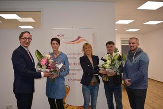 Der HGV - Vorstand überreicht Blumen zum Einstand für die neue Marketingassistentin Anja Ganser (links). Als Dank für die gute Zusammenarbeit geht ein Strauß an ihre Vorgängerin Melanie Barth (r.)