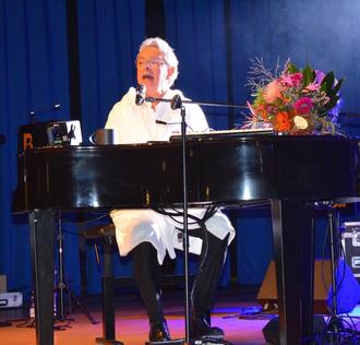 Ganz im Stile seines großen Idols, verstand es Richard Bauer, auf emphatische Art und Weise eine phantastische Stimmung zwischen sich und den etwa 220 Besuchern herzustellen. Das galt vor allem für seine Stimme, deren Nähe zum Original frappierend ist, aber auch für die erzählerischen Einblicke die der Sänger und Pianist dem Publikum über Udo Jürgens vermittelte. Er begleitete sich ganz nach Udos Manier auch selbst am Klavier und wurde durch seine Band mit einer fünfköpfigen Bläsergruppe, Schlagzeug sowie Gitarren- und Flötenspiel wunderbar begleitet. Geradezu melancholisch wurde es, als Bauer mit seiner Tochter Katharina Rosa den Song „Liebe ohne Leiden“ darbot, den auch Udo mit seiner Tochter Jenny im Jahre 1984 aufgenommen hatte. Bauer ist es gelungen die Konzertbesucher auf eine musikalische Zeitreise mit den bekanntesten Hits seines Idols zu entführen.
