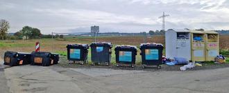 … sind auf diesem Bild, das RuH-Leser Bernd Mende am Wertstoffsammelplatz in der Raiffeisenstraße in Hermeskeil aufgenommen hat, zu erkennen: Zwei der insgesamt sechs Biomüllcontainer wurden umgeworfen. Vielleicht waren sie leer und wurden von einer starken Windbö erfasst. Waren dagegen Menschen die Verursacher, sollten sie sich vielleicht einmal auf ihren Geisteszustand untersuchen lassen. Unverkennbar hat hier auch jemand eine zusammengerollte Matratze entsorgt, für den das zuletzt Gesagte gleichermaßen gilt. Als Drittes erkennt man lose herumliegende Textilien sowie einen damit überquellenden Karton. Offenbar war es den „Lieferanten“ zu viel, ihre Ware wieder mitzunehmen, nachdem sie festgestellt hatten, dass die Kleidercontainer schon voll waren. Womit wir beim vierten Missstand wären: Wie immer wieder auch anderenorts festzustellen, werden die Altkleidercontainer von den sie betreibenden Organisationen nicht oft genug geleert und quellen öfter über. Das müsste nicht sein!