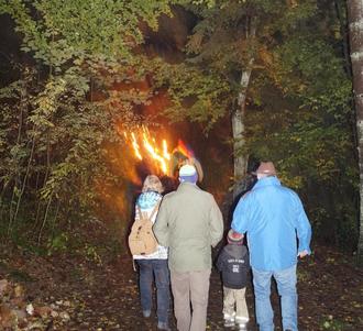 Bereits seit einigen Jahren organisiert der Heimatverein Neuhütten regelmäßig Veranstaltungen für Familien mit Kindern. Ein fester Termin im Veranstaltungskalender ist die Fackelwanderung, die Halloween zum Anlass nimmt der herbstlichen Dunkelheit mit Fackeln zu trotzen und bei Stockbrot am Lagerfeuer Gruselgeschichten auszutauschen. Kurz nach 18 Uhr war es ausreichend dunkel, um die Teilnehmenden mit Fackeln auszustatten und zu einer kurzen Wanderung oberhalb der Köhlerhütte Neuhütten zu motivieren. An der Spitze wanderten unerschrockene Jungs, die sowohl den Weg als auch die besondere Begebenheit der Fackelwanderung kannten. Es folgten einige Familien, auch mit Kinderwagen und Kleinkinder mit elektrischen Fackeln, die ihnen das Dabeisein ermöglichte, ohne den Gefahren von offenem Feuer direkt ausgesetzt zu sein. Im Anschluss an die Wanderung traf man sich wieder am Lagerfeuer an der Köhlerhütte, wo die Ehrenamtlichen des Heimatsvereins Stockbrotteig bereithielten, der von den vielen Kindern gebacken und genascht wurde. Für die Erwachsenen gab es Glühwein und Kaltgetränke, was die Redseligkeit förderte. Ein schönes, Gemeinschaft förderndes Ereignis. (TB)