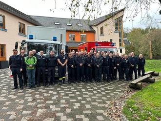 Die Teilnehmer der Kreis übergreifenden Katastrophenschutzübung vor der Jugendbegegnungsstätte bei Kell am See