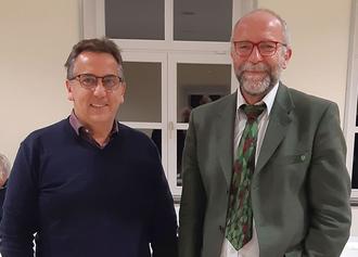 Peter Meyer (r.), der nach 30 Jahren als Revierförster das Revier Büdlicher Brück, zu dem auch Nauraht/Wald gehört, verlässt, wurde von Ortsbürgermeister Dirk Nabakowski verabschiedet.