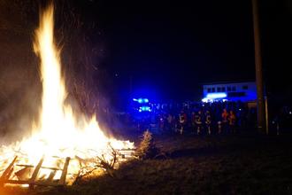 Das Martinfeuer zwischen Neuhütten und Züsch wird von der Freiwilligen Feuerwehr begleitet. Diesmal führten der Musikverein Neuhütten und ein echter Sankt Martin mit rotem Umhang auf seinem Pferd den Umzug an.