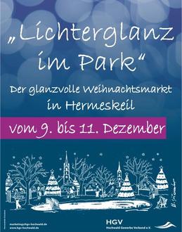 Das stimmungsvolle Event „Lichterglanz im Park“ feiert in diesem Jahr, so Kruchten, sein 10. Jubiläum. Dem HGV ist es wichtig, klassische, traditionelle, aber auch moderne Elemente zu mischen, so dass jeder Besucher in eine wundervolle Vorweihnachtsstimmung kommen kann. Über 20 weihnachtlich geschmückte Hütten werden den Stadtpark in eine Weihnachtslandschaft verwandeln. Das hochwertige Angebot bietet u.a. Holzspielsachen, Bücher, Spielwaren, weihnachtliche Kränze, Kerzen, Schmuck uvm. Für das leibliche Wohl ist bestens gesorgt. Flammkuchen, gebratene Pilze, Waffeln, gebrannte Mandeln, Reibekuchen, Glühwein, Kinderpunsch, Glühgin und weitere Leckereien werden angeboten, auch Getränke aller Art sind im Angebot.