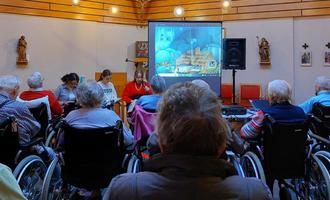 Ebenso ging es den anderen Vorleserinnen und Vorlesern des Gymnasiums, die in der Grundschule in Beuren, Hermeskeil, Nohfelden, Osburg, Wadrill und Züsch mit ihren Geschichten die Grundschülerinnen und Grundschüler begeisterten. Auch die kleinsten Zuhörer in der KiTa Rosa Flesch tauchten in spannende Geschichten ein, erlebten aufregende Vorlesemomente und zeigten den Abiturienten des Gymnasiums, die sich vor Ort als Vorleser einbrachten, wieviel Freude Vorlesen bringen kann und die Fantasie beflügelt. Doch sollte an diesem Tag auch die Generation der (Ur-)Großeltern nicht vergessen werden, die noch mit Märchen uns Kinder begeistert hatte: So machten sich zwei Lesegruppen der 11. und 13. Jahrgangsstufe auf und besuchten das Hochwald-Altenzentrum St. Klara Hermeskeil und das Haus am Ringwall in Nonnweiler-Otzenhausen: Es wurden Märchen und Sagen vorgelesen, mit den Seniorinnen und Senioren geredet, gespielt und gelacht.