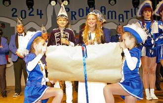 Im Anschluss auf die tänzerische Einstimmung durch die Juniorengarde des KV Ruck Zuck stellte sich das neue Kinderprinzenpaar vor. Marlon I. ist als Messdiener, Handballer wie sein Vater im TVH und als Waldläufer unterwegs. Sport und Erdkunde sind die Lieblingsschulfächer von Prinzessin Mila, die nicht nur in der Jugendgarde tanzt, sondern sich überhaupt viel bewegt beim Turnen, Reiten und Radfahren. Die beiden haben „die Zukunft stets fest im Blick“ und wünschen sich dabei Frieden, Freude und Heiterkeit.