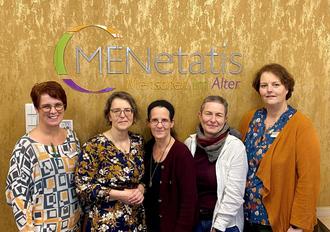 Kooperationsvereinbarung mit dem Seniorenzentrum MENetatis Osburg; V.l.n.r.: Sonja Cater (MENetatis Osburg QM Beauftragte, Andrea Tokarski (Geschäftsbereichsleitung Marienhaus Hospize); Marion Schronen (Hospizleitung AHPB Hermeskeil-Morbach), Katja Kirsch (Hospizfachkraft Ambulantes Hospiz Hochwald) und Alexandra Krämer (Heimleitung MENetatisOsburg und Waldrach