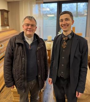 Stehen mit Rat und Tat zur Seite: Pfarrer Christian Heinz und Leonard Linn vom Bestattungshaus Linn.