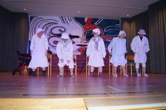 Die „Golden Girls“ kritisierten mit einer Pantomime den aktuellen Pflegenotstand in Altenheimen. Ganz ohne Worte und Gepolter zeigten sie eine besonders witzige Variante davon, was Sparmaßnahmen im Gesundheitswesen bedeuten können. Das Männerballett „Celtic Dollberg“ trug auf die Bühne, was Jungs am liebsten mögen: Fußball und Bier. Ihr Spaß übertrug sich im Nu auf das gesamte Publikum, das tobte und auf den Tischen stand. Guido Düpre und sein Sohn Manuel brachten eine Gesangseinlage als DJ Ötzi und Marc Pircher. Eine melancholische Note brachten Thomas, Johannes, Ruth und Sandra Serwene ein, die den Karnevalsklassiker „In unserm Veedel“ von den Bläck Fööss zum neuen Prinzenlied der Neuhüttener umgeschrieben haben und den Saal zum Schunkeln brachten.