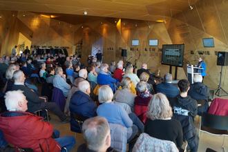 Am vergangenen Sonntag, zeitgleich zur größten Demonstration, die Trier je gesehen hat, war auch in Hinzert die Gedenkstätte mit 130 Gästen voll besetzt. Der Förderverein hatte zum jährlichen Gedenken anlässlich des 27. Januar eingeladen. Dr. Kathrin Meß berichtete von ihren Forschungen zur Opfergrupp der als „asozial“ bezeichneten Luxemburger, die unangepasst waren und den damaligen gesellschaftlichen Normen nicht entsprachen und deshalb Opfer der NS-Diktatur wurden. Musikalisch wurde der Vortrag vom Hinzerter Duo Stefan und Ralf Backes begleitet.