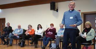 Die Visitation, die sich nach der räumlichen Neustrukturierung künftig in den Pastoralen Räumen über ein Jahr erstrecken soll, sei „keine Einbahnstraße, sondern ein Wechselspiel“, betonte von Plettenberg. Sie frage danach, wie sich kirchliches Leben in einem konkreten Raum gestalten lasse, und ermögliche umgekehrt auch Impulse für die Pastoral des Bistums: Es gehe darum, „noch näher am Menschen“ zu sein mit einer Kirche, die sich in die Gesellschaft einbringe. Der Generalvikar fasste in dem Abschlussbericht seine Erfahrungen und Wahrnehmungen während der Visitation in vier schlaglichtartigen Punkten zusammen: „Nicht mehr überall alles, aber auch nicht an einigen Orten nichts mehr“, „Das Zentrum Hermeskeil bröckelt“, „Zu stolz, um arm zu sein“ und „AfA und Hinzert versus AFD und Höcke“. In Kleingruppen setzten sich die Teilnehmenden mit diesen Wahrnehmungen und den sich daraus ergebenen Fragen für die eigene Arbeit rund um diese Themen auseinander. Zuletzt ging es um den Abgleich der pastoralen Handlungsfelder, die sich der Rat und die Hauptamtlichen des PastR als Schwerpunkte gesetzt haben, mit den Wahrnehmungen und Erfahrungen des Visitators. Letztere sollen in die künfti- ge pastorale Arbeit mit einfließen – darunter das Ziel der Vernetzung mit anderen gesellschaftlichen Akteuren.