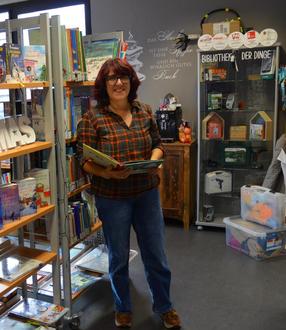 Marion Adams vor den Bücherregalen in der Hermeskeiler Stadtbücherei