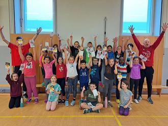 99 Schüler und Schülerinnen der Grundschule Hermeskeil absolvierten an zwei Tagen dabei die Stationen zum Erwerb des „Hanniball-Passes“, der zusammen mit Hanniball-Stickern als Urkunde und Erinnerung an die teilnehmenden Kinder überreicht wird.