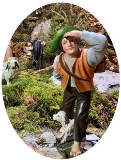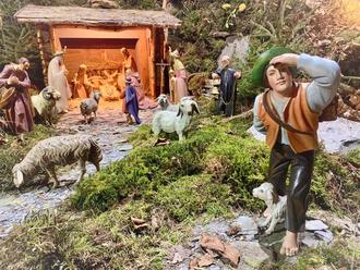 Das Bild zeigt einen Hirten der großen Weihnachtskrippe in Thomm. Die Besonderheit dort: Viele Krippenfiguren tragen die Gesichtszüge von Menschen, die mit Thomm verbunden sind. Diese hier soll die Gesichtszüge des aktuellen Thommer Pfarrers Dekan Christian Heinz tragen.