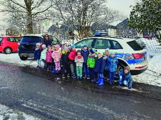 Die „Bärenkinder“ der Kita Gusenburg erhielten von Frau Ruth Porten von der Polizei Hermeskeil einen Einblick in die Polizeiarbeit. Was passiert, wenn man im Auto nicht angeschnallt ist, wurde in einem anschaulichen Experiment verdeutlicht. Außerdem lernten die Kinder den sicheren Umgang mit der Polizeinotrufnummer 110. Auch Kinder dürfen im Notfall diese Nummer wählen und Hilfe holen. Vielen Dank an Frau Porten für diesen informativen Vormittag.