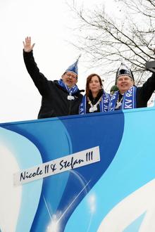 Prinzenwagen mit Prinzenpaar und Sitzungspräsident