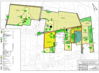 Die Skizze zeigt den Änderungsplan für das Neubaugebiet. Die rot umrandeten Flächen stellen die Magerwiesen dar. Grafik: Gde Gusenburg