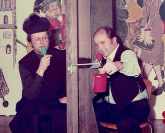 Lämmerball 1984: Vor "Beichtveter" Heinz Jostock bekennt Stadtbürgermeister Karl-Heinz Dahlke seine "Sünden", die er im Amt begangen hat.