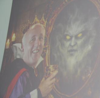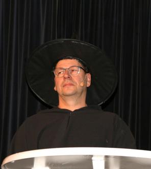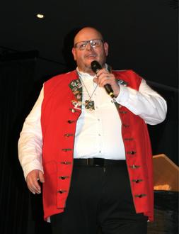 Pastor Kai Georg Quirin schwadronierte mit seinen situationsbezogenen lockeren Sprüchen wie schon gewohnt von einem Thema zum anderen. Seine Figur betrachtete er als „transadipös“ und obwohl er sich wie ein Weihbischof im Ruhestand fühle, fehle ihm immer noch das vierfache Gehalt. Die Rede, die er eigentlich vorbereitet hatte wird dann doch nichts. Hatte auch er Probleme bis nach hinten durchzudringen verschaffte er sich „stimmgewaltig“ Gehör mit den abschließenden Gesangseinlagen, die letztendlich den ganzen Saal auf die Stühle und zum Mitsingen brachten.