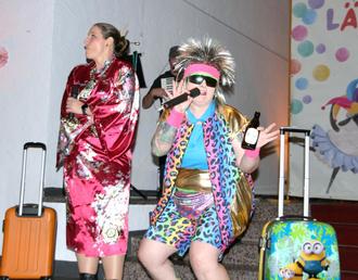 Dekan Christian Heinz und Lena Weber moderierten souverän durch das Programm und konnten nicht oft genug den Schlachtruf „Ihr Lämmer – määääh“ anstimmen. Bernd Willems nahm als T(RuH)badour auf die Melodie von „Heile heile Gänschen“ mit eigenen Reimen die Stadt- und Weltpolitik aufs Korn („... heile, heile Mausezahn, der John verkauft uns Baldrian“) und sang in einem zweiten Vortrag ein Loblied auf die Stadt Hermeskeil. Dominic Winter beklagte sich über die Dominanz der Ehefrauen und war froh, dass in Deutschland nur eine Frau erlaubt ist. Die Buddies aus Irsch versäumten bei der Diskussion um Sinn und Inhalt der Reise nach Tokio ihren Flieger und der Stadtbürgermeister beklagte die Dinge, die in der Stadt nicht gut laufen, mit dem Refrain „Hermeskeil owei owei, hier bin ich der Depp dabei“. Lena Weber erschien als Prälatin im Auftrag des Bischofs Ackermann und nahm sich Politik und Kirche vor, Dekan Christian Heinz brillierte wieder als Bischof Pumba und „Göttliches Warzenschwein“ und Prinzessin Xenia I. aus Gusenburg war, leicht beschwipst, mit ihren Reimen über die eigene Person und die Bekanntschaft mit dem Stadtbürgermeister für so manchen Lacher gut. Hartmut Heck sorgte für die musikalische Unterhaltung und Tanzmariechen Emilia Lehnen fegte mit ihrer Show durch den Altarraum. Ruck-Zuck-Vorsitzender Jörg Hartig lobte das Engagement der Protagonisten, diese alte Tradition wiederbelebt zu haben. (BäR)