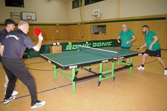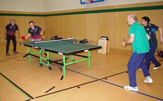 Das Doppel Mathias Brittinger/Uli Jansen (im Vordergrund links) konnte in 3 Sätzen mit 12:10, 11:9 und 11:8 gegen das Könener Doppel 2 gewinnen.