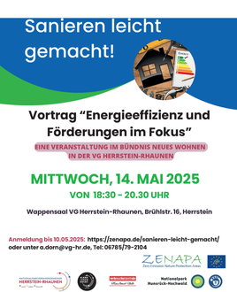 Anmeldelink: https://zenapa.de/sanieren-leicht-gemacht/ oder alternativ telefonisch oder per Mail unter: +49 6785 792104 oder a.dorn@vg-hr.de